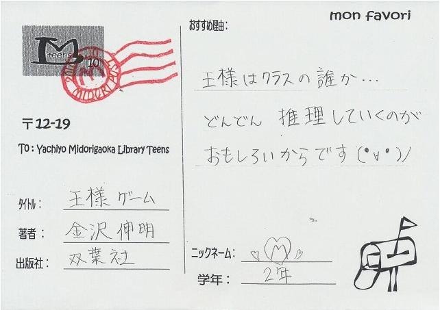 王様はクラスの誰か・・・どんどん推理していくのがおもしろいからです(・∀・)/
