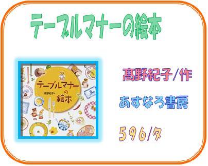 『テーブルマナーの絵本』 高野紀子/作,あすなろ書房,596/タ