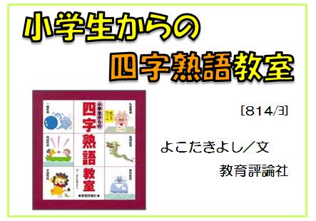 『小学生からの四字熟語教室』 よこたきよし/文,教育評論社,814/ヨ