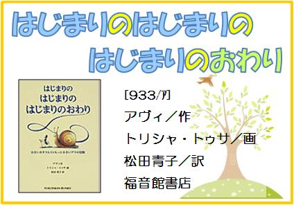 『はじまりのはじまりのはじまりのおわり』 アヴィ/作,トリシャ・トゥサ/画,松田青子/訳,福音館書店,933/ア
