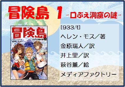 『冒険島 1 ~口ぶえ洞窟の謎~』 ヘレン・モス/著,金原瑞人/訳,井上里/訳,萩谷薫/絵,メディアファクトリー,933/モ