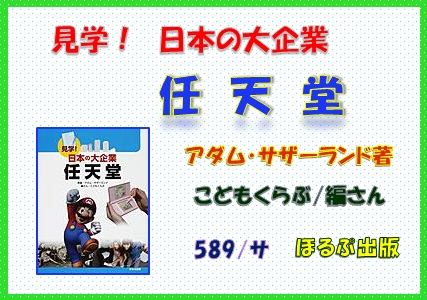 『見学!日本の大企業 任天堂』 アダム・サザーランド/著,こどもくらぶ/編さん,ほるぷ出版,589/サ