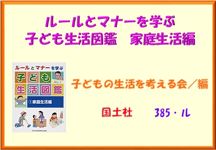 『ルールとマナーを学ぶ 子ども生活図鑑 家庭生活編』 子どもの生活を考える会/編,国土社,385/ル