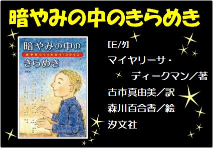 『暗やみの中のきらめき』 マイヤリーサ・ディークマン/著,古市真由美/訳,森川百合香/絵,汐文社,289/ブ