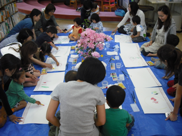 「図書館であそぼう-お花畑をつくろう-」が5月18日(火)、大和田図書館児童室でありました。