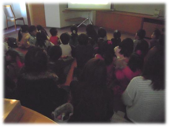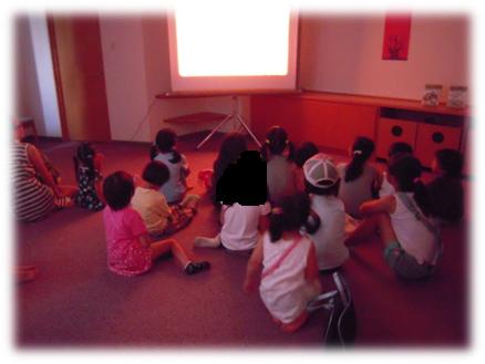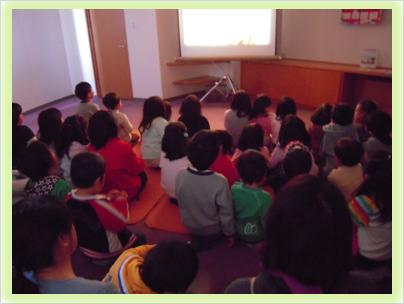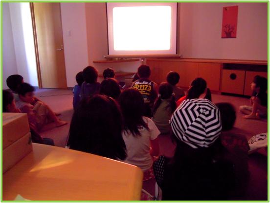 はじめて見る機械を気にしているお友達もいましたが、上映が始まると、みんな夢中で見ていました。