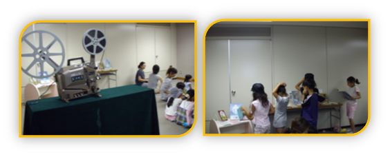 「こども映画会」では涼しいおはなし室でアニメの「鉄腕アトム」を楽しみました。