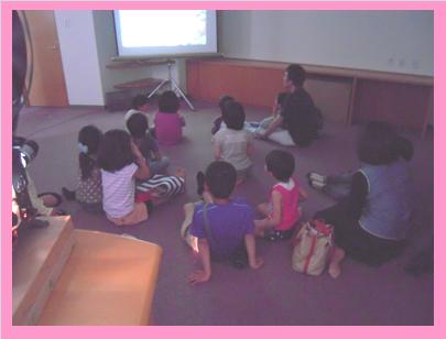 あつ~い夏の日に涼しいおはなし室で,「雪の女王」と「プーさんと虎」を上映しました。