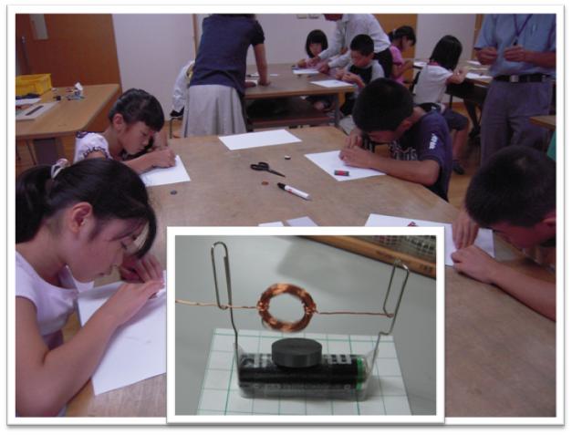 そして、みんな真剣に電磁石モーターを作り、みごと全員のモーターが回りました。