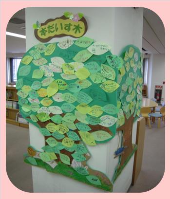 緑が丘図書館では、「本だいす木」の木をみんなで育てています。