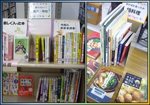 一般室の展示コーナーでは防災や防犯に関する本と寒い冬に食べたい鍋料理の本を展示しています。