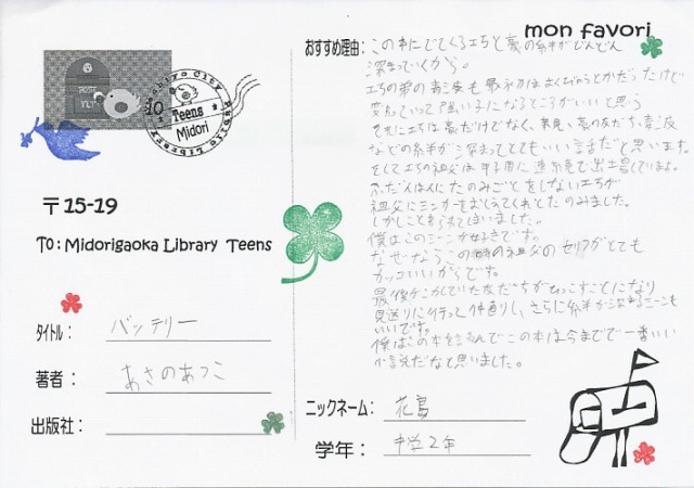 ニックネーム:花島  学年:中2