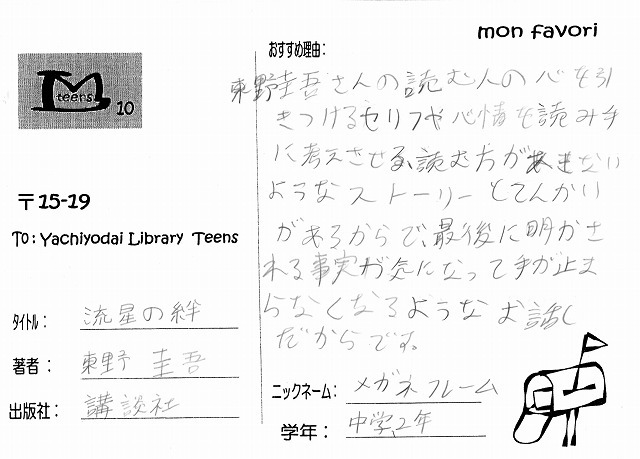 東野圭吾さんの読む人の心を引きつけるセリフや心情を読み手に考えさせる、読む方があきないようなストーリーとてんかいがあるからで、最後に明かされる事実が気になって手が止まらなくなるようなお話だからです。