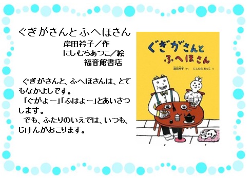 『ぐぎがさんとふへほさん』 岸田衿子/さく,にしむらあつこ/え,福音館書店,E/ニ