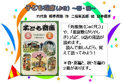 『子ども寄席 春・夏』 六代目柳亭燕路/作,二俣英五郎/絵,日本標準,779/リ