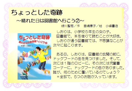 『ちょっとした奇跡』 緑川聖司/作,宮嶋康子/絵,小峰書店,913/ミ