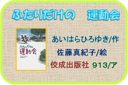 『ふたりだけの運動会』 あいはらひろゆき/作,佐藤真紀子/絵,佼成出版社,913/ア