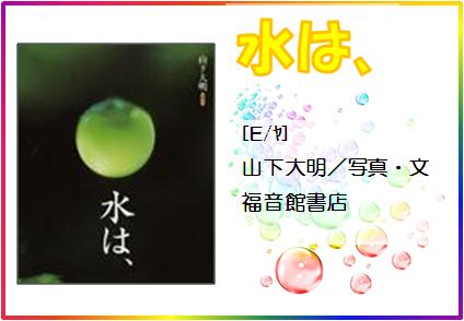 言葉はとても少ないですが、写真がとても美しく、写真を見るだけで水の恵みを感じることができる絵本です。(K)