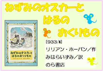 『ねずみのオスカーとはるのおくりもの』 リリアン・ホーバン/作,みはらいずみ/訳,のら書店,933/ホ