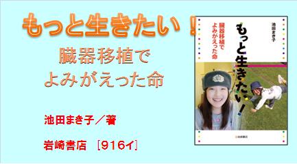 『もっと生きたい! ~臓器移植でよみがえった命 ~』 池田まき子/著,岩崎書店,916/イ