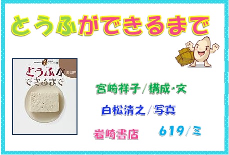『すがたをかえるたべものしゃしんえほん 1 とうふができるまで』 宮崎祥子/構成・文,白松清之/写真,岩崎書店,619/ミ