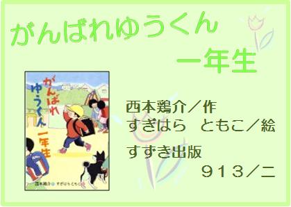 『がんばれゆうくん一年生』 西本鶏介/作,すぎはらともこ/絵,鈴木出版,913/ニ