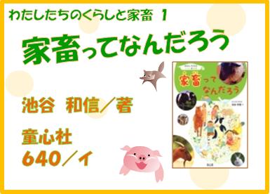 『わたしたちのくらしと家畜 1 家畜ってなんだろう 』 池谷和信/著,山本暁子/絵,童心社,640/イ