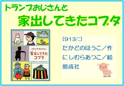 『トランプおじさんと家出してきたコブタ』 たかどのほうこ/作,にしむらあつこ/絵,偕成社,913/タ