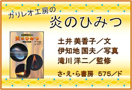 『ガリレオ工房の炎のひみつ』 土井美香子/文,伊知地国夫/写真,滝川洋二/監修,さ・え・ら書房,575/ド